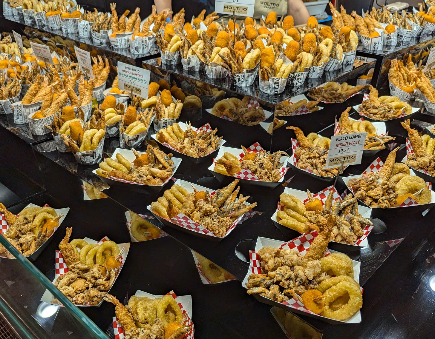 La Boqueria, the iconic Barcelona food market has enormously changed since we were here in 2019, and even more since the late ‘90ies, when I first visited it. It was a tourist attraction but still remained a place where locals were buying their fish, meat, and vegetables.