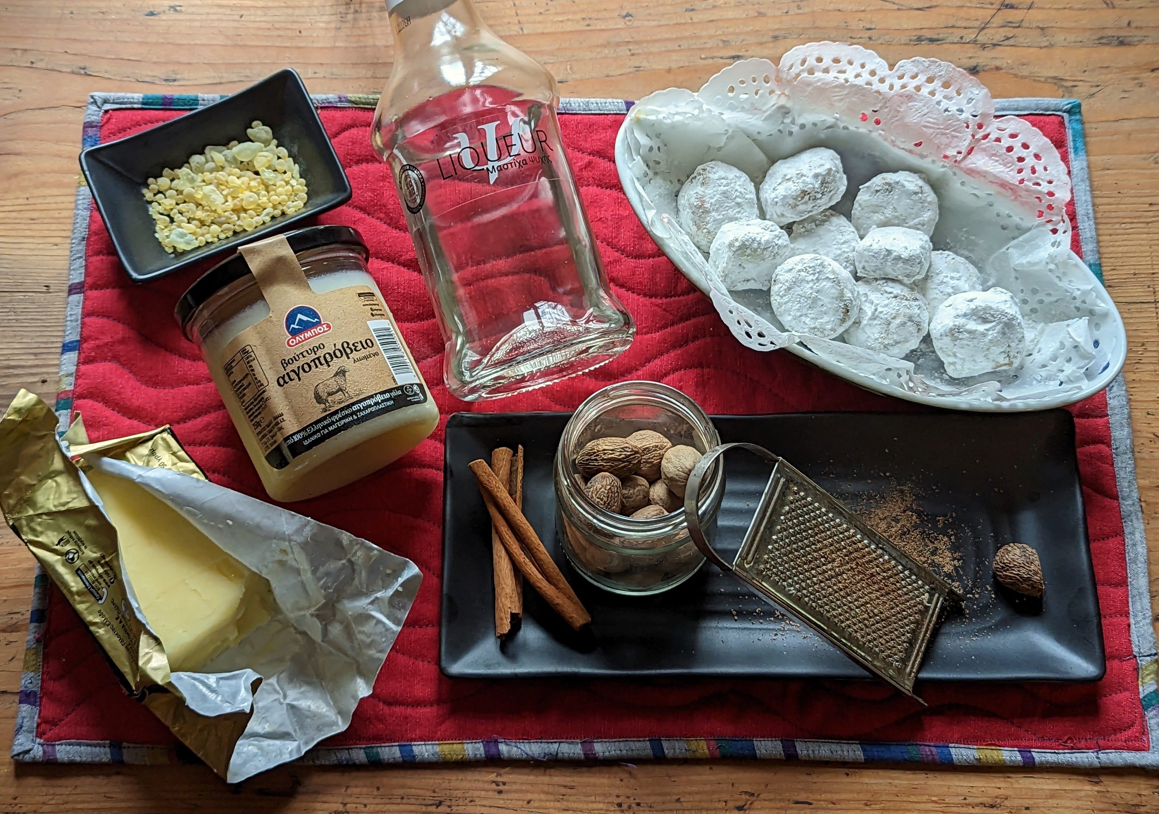 My assumption is that the cosmopolitan Galaxidi merchants were maybe inspired by the festive European/Grerman Christmas cookies. But this is my hypothesis, as I consider baking Pfeffernüsse and Lebkuchen these days…