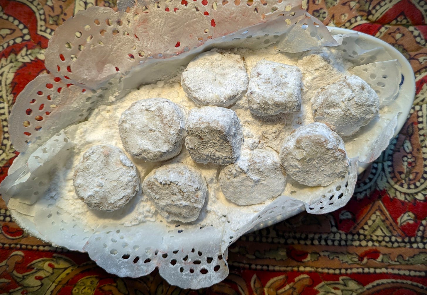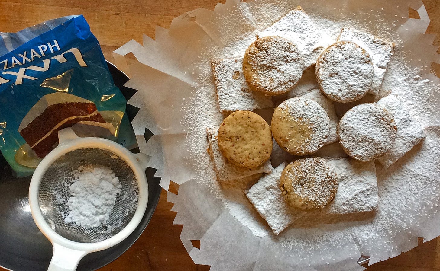Paula Wolfert in her wonderful 1988 book ‘Paula Wolfert’s World of Food‘ has a version of kourabiedes she calls ‘Greek Butter-Almond Cookies’ and over the years she kept telling me how amazing they were. As she wrote in the headnote of her recipe she served them at her wedding, as some Greek families do.