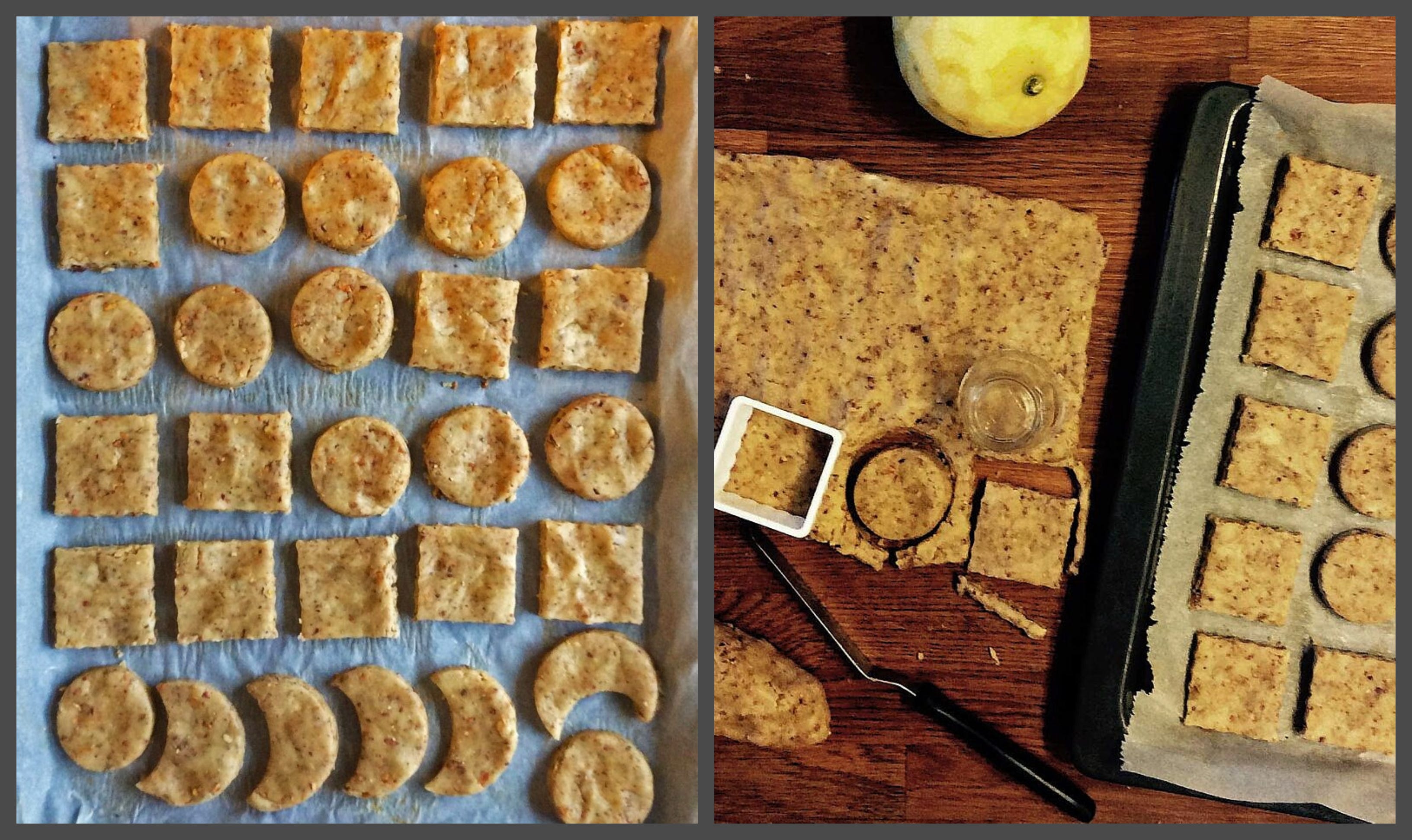 Alternatively flatten the dough on the work surface making about 1/3 inch thick squares, and with small cookie cutters cut rounds, squares or crescents. Collect and flatten the leftover dough, then cut into shapes again.