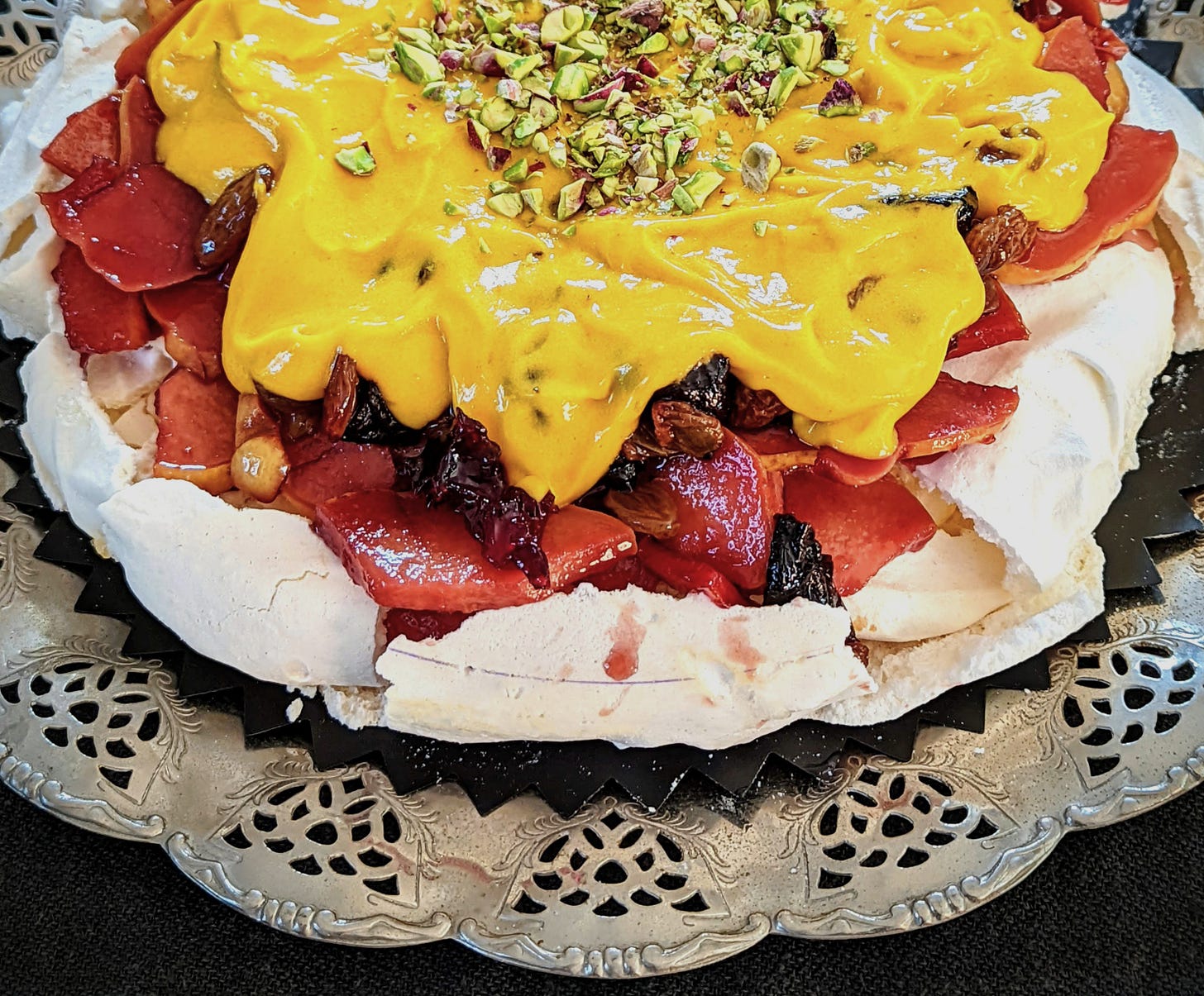 Looking for sweets that use more than 2-3 eggs, I came across the winter version of Pavlova with Zabaglione Creme, at Saveur.