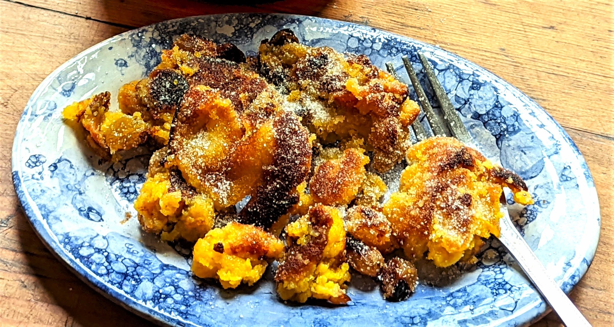 We were more satisfied with the next sweet we made; a very unusual Austrian mushed-up pancake called Kaiserschmarrn. We happened to see it served in a documentary about Vienna cafés and looked for the recipe, which we followed. It was simple enough, and we decided to double the number of liqueur-soaked raisins –used Grand Marnier again— instead of the rum the recipe asks for. We hardly ever make pancakes, but this was a very simple endeavor, and the sweet came out wonderful, if not too photogenic…
