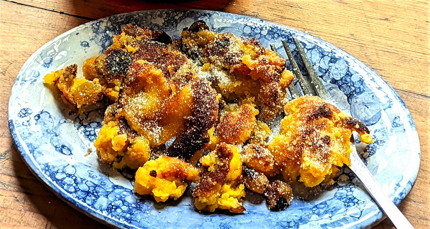 The moral of the story, we think, is that the very fresh, delicious eggs from hens that roam around the fields in the winter are best eaten in savory dishes!