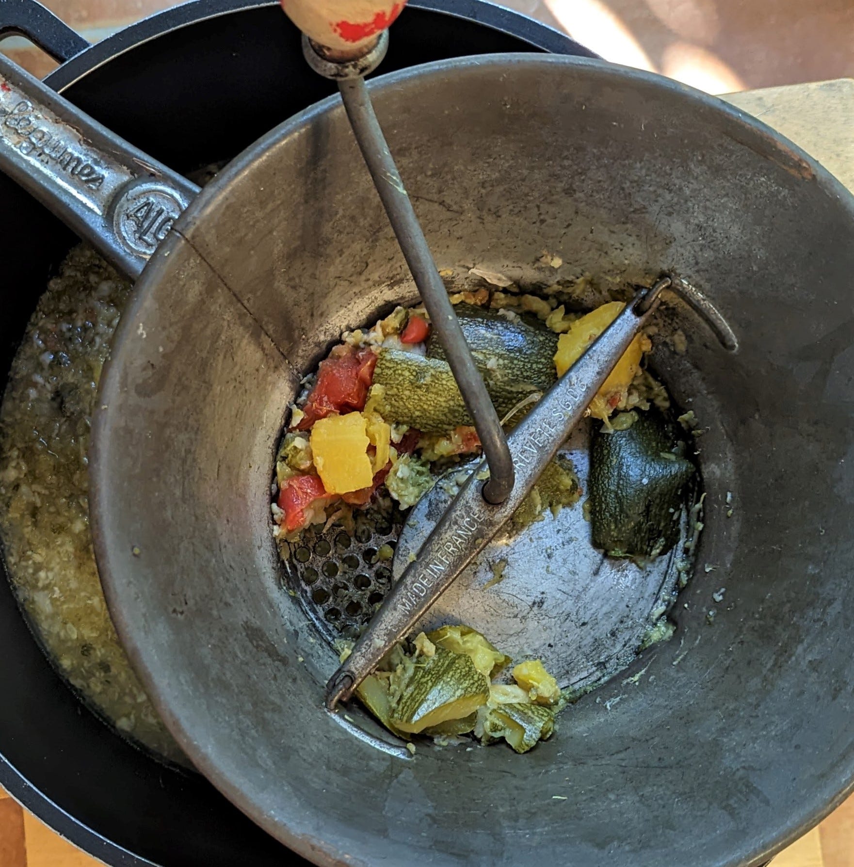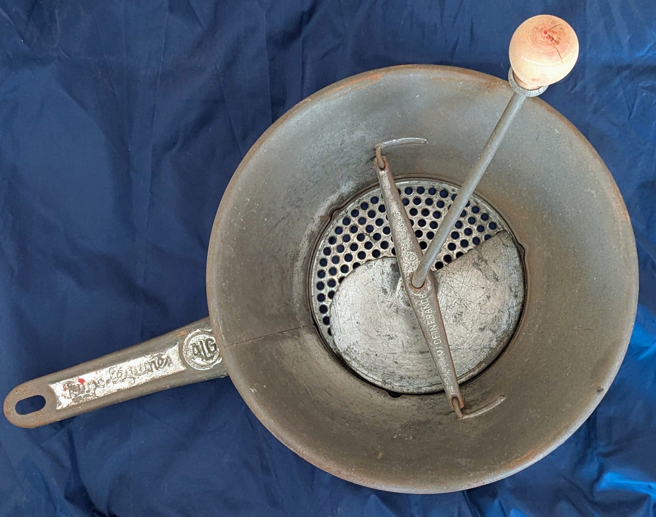 My most cherished old utensil is this vegetable mill I inherited from my mother in law’s kitchen.